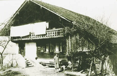 Mère de J.-P. Rubath devant la maison Rubath